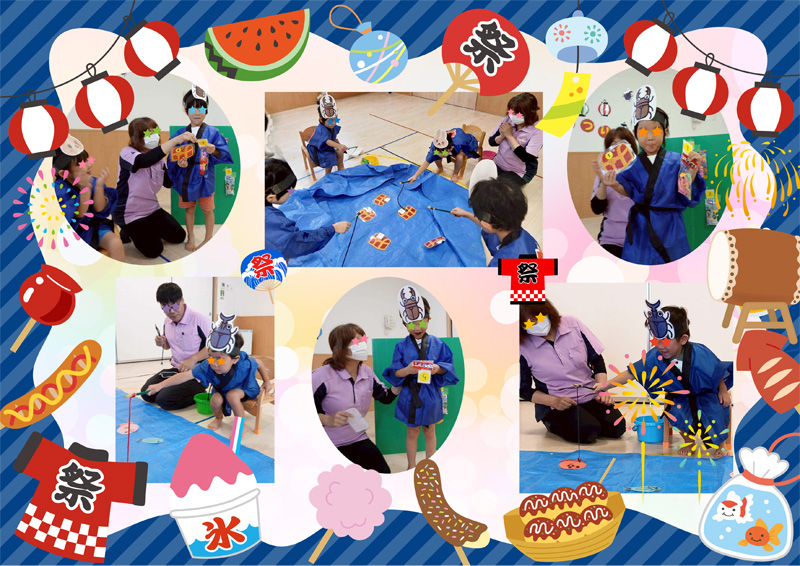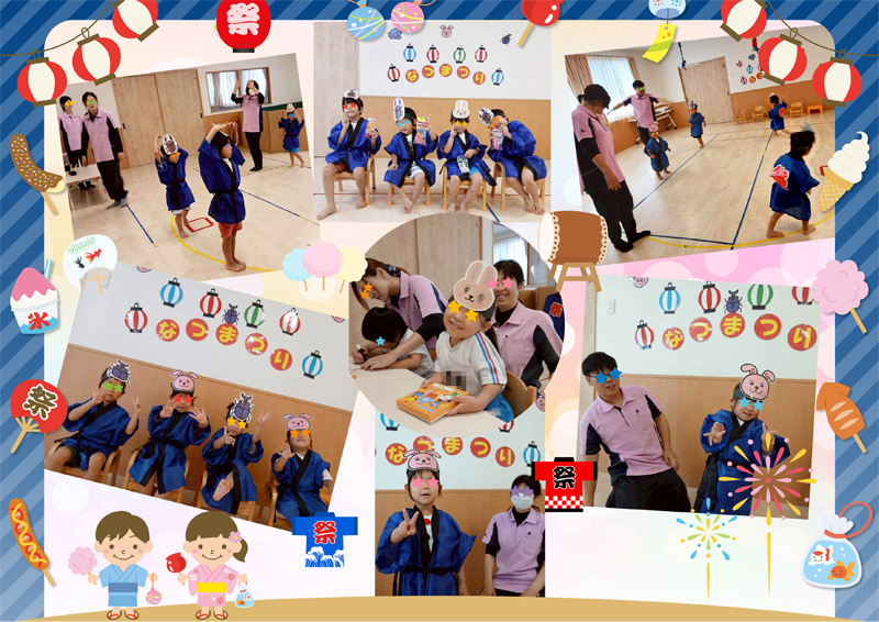- 8月12日にみんなで夏祭りを楽しみました。
